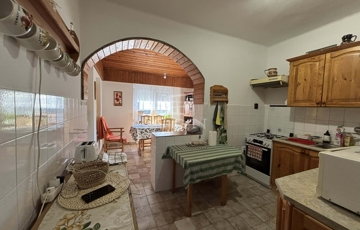 Az 1993-as tégla építésű ingatlan földszintjén 2 szoba, konyha, kamra, nappali, előszoba, fürdőszoba és tároló helyiség került kialakításra.