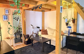 A galéria növeli a hasznos életteret, így a lakás méretéhez képest kifejezetten tágas érzetet nyújt.