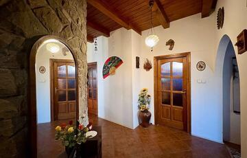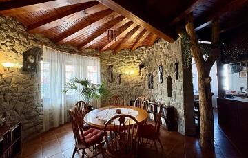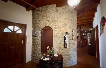 -2003-ban épült, 30-as Porotherm téglából, a ház teljes falfelületét faragott kő borítja.