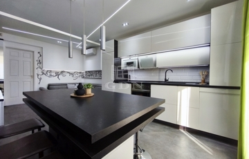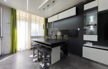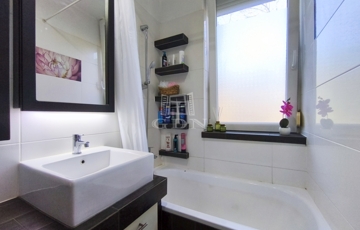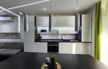 A gépesített, beépített konyha sütővel, hűtőszekrénnyel, mikrohullámú sütővel és kivezetett szagelszívóval felszerelt, így a lakás azonnal költözhető.