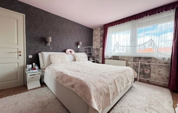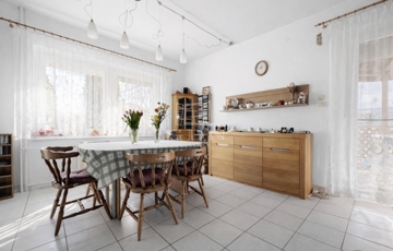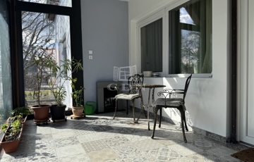 A nyugodt környezetben elhelyezkedő ingatlanhoz egy konyhából nyíló 10 négyzetméteres fedett terasz is kapcsolódik kertre néző kilátással.