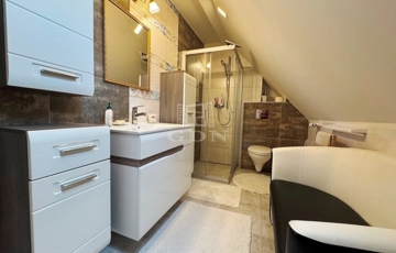 tetőtér: társalgó, 2 szoba, 2 félszoba, 2 gardrób, fürdőszoba-wc;