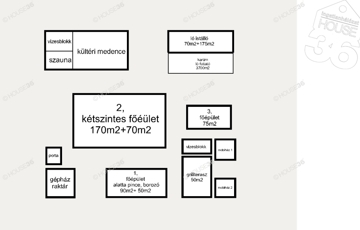 Napelem (40 kw), Boros pince, Elektromos kapu, Automata öntözőrendszer, Kerti sütögető/szaletli, Szauna, Kültéri medence, Kamerarendszer...