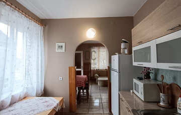 -a hátsó udvari ház: 30 m2 nagyságú: konyha-étkező-nappali, mosdó-WC került kialakításra, felső szinten hálószobával