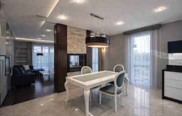 - Bioetanolos látványkandalló és üvegfal a nappali–étkező között