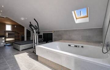 TETŐTÉR: wellness-részleg (finn szauna, kétszemélyes kád), tetőterasz merülőkáddal