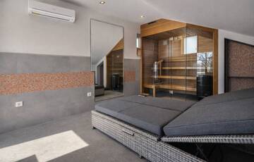 A tetőtéri wellness-szint saját szaunával és merülőkáddal a mindennapi feltöltődést szolgálja, miközben igény esetén önálló lakószintté is alakítható