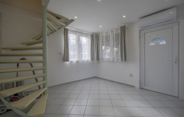 Bruttó 34 m2-es, belső két szintes, 2 szobás, klimatizált, nagy teraszos kertes ház kiadó Ecseren, a Zártkerti dűlőn.
