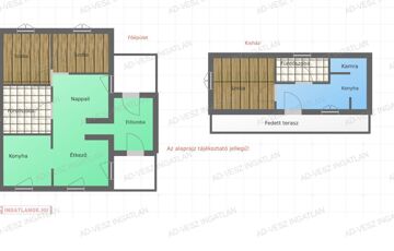 A 38 nm-es teljesen önálló lakrész is felújításra került ,ahol megtalálható szoba,konyha,étkező,fürdőszoba wc-vel,kamrával.