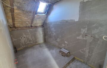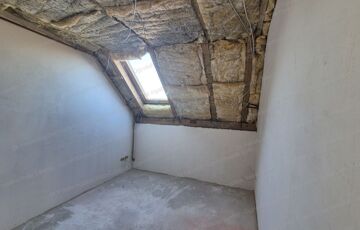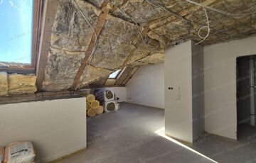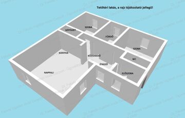 a nappali + 2 szobás, hátsó udvarra néző tetőtéri téglalakás fűtéskészen.