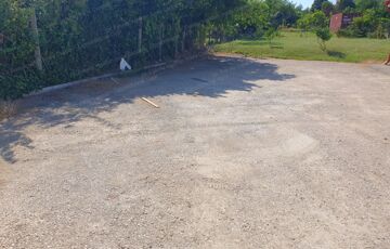 Nagy térkövezett, füvesített közös udvar vár