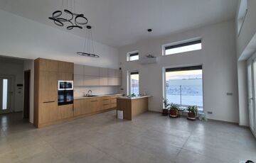 A lenyűgöző nappali-konyha-étkező egy légtérben, extra 4 méteres belmagassággal, két oldali természetes bevilágítással kerámia burkolattal és közvetlen, (21,93 nm) teraszkapcsolattal lett kialakítva – a fény és tér élménye garantált. A nappaliban 6 db elektromos redőny, valamint egy 5,4 kW-os klíma kerül beépítésre
