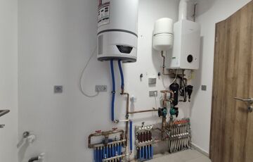 Fűtés: padlófűtés a nappaliban, radiátoros hőleadás a hálókban – gázkazán és hőtárolós bojler biztosítja az energiatakarékos működést