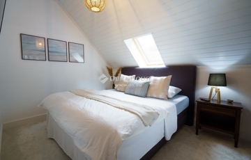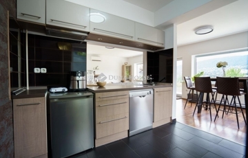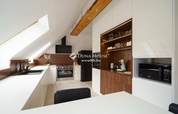 A ház minden részletében a kényelem és az elegancia találkozik. Az alsó szinten található amerikai konyhás nappali tágas, 46 m²-es terével és hatalmas ablakain keresztül lenyűgöző kilátást nyújt a Testvérhegyre. Innen léphetünk ki a 35 m²-es teraszra, ahol a reggeli kávézás és az esti naplemente alatt is gyönyörködhet a tájban.
