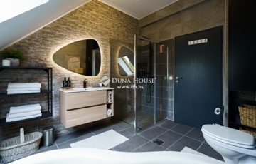 A ház minden részlete a korszerű életvitelt szolgálja. Az idén teljesen cserélt tetőszerkezet napelemekkel egészül ki, amelyek csökkentik az energiaköltségeket. A külön szinteken működő gáz-cirkó fűtés és a klímaberendezések biztosítják az évszaktól független kényelmet.