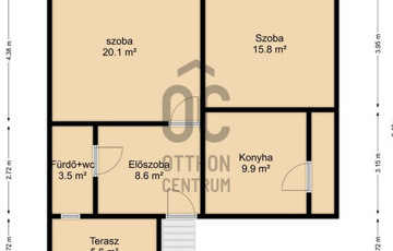 - Az építmény nettó 66 m2-es, a terasszal együtt 72 m2, mely felújításra szorul.