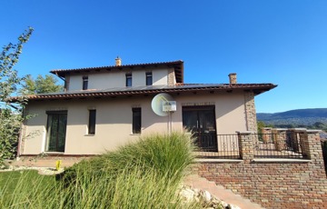 A ház 38-as Porotherm téglából épült, 12 cm-es szigeteléssel, a tetőn mediterrán cserépfedés.
