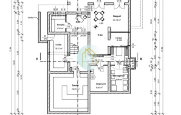 konyha-étkező-nappali, fürdő-Wc, tároló,