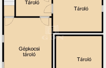 A pinceszint 65 nm területű, 20 nm-es, motoros kapus garázsból, két tárolóhelyiségből és egy külön kézmosós WC-ből áll. Az udvaron további egy autó számára biztosított beállási lehetőség is adott.