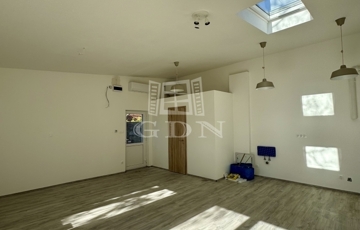 Jelenleg egy tágas, 37 nm-es, amerikai konyhás nappaliból áll, amelyet két különleges felülvilágító ablak tesz egész nap világossá.
