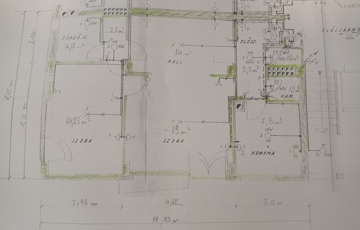 Helységek: 2 szoba + hall, fürdőszoba, gardrób, előszoba, külön WC, kamra, konyha