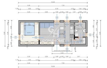 - A hirdetett modulház nettó alapterülete: 32,2 m2