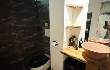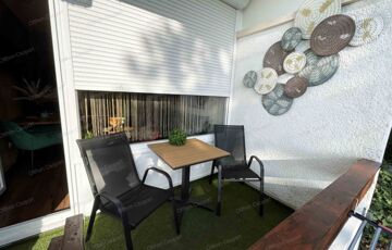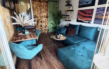 Egyedi tervezésű, prémium design-apartman eladó Balatonalmádi Káptalanfüred részén társasüdülőben, a teraszról balatoni panorámával, gondozott, közös használatú kerttel, napozóval, grillezővel, kiülővel, közúton 600 méterre a hangulatos, családias Káptalanfüred strandtól, gyalog se több néhány percnél. Saját, zárható, árnyékolt kocsibeállóval, parkolóval közvetlenül a ház mellett (amely részét képezi az adásvételnek). Műszakilag tökéletesen felújított és tervező által megdizájnolt állapotban, tehát teljesen új elektromos és vízhálózattal, teljes felületén elektromos fűtőszálas padlófűtéssel, szobatermosztáttal. Dél-keleti tájolású, szépen árnyékolt, földszinti nyaraló, a teraszról kijárással a gyönyörű kertre, melyet kertész gondoz. Alapterülete 25,3 m2, egy nappali/háló kihúzható kanapéval, + egy vendég-fotelágy, 3 személy részére kényelmes alvási lehetőséggel, ill. 3 személyre szabott ebédlőasztallal, tágas gardróbbal. Teljeskörűen berendezett, új konyha rész új háztartási gépekkel, önálló fürdőszoba tusolóval, wc-vel, 50 literes bojlerrel. Terasz 5 m2, 2+2 személy számára kiülési lehetőséggel, balatoni panorámával. A legtöbb bútor, ill. berendezés egyedileg tervezve és gyártva borovi fenyőből a lehető legoptimálisabb helykihasználással. Csodás panoráma nyílik bentről is a nappaliból a Balatonra a hatalmas üvegfelületen keresztül. Az árban foglaltatik az összes berendezési tárgy és bútor okostévével, hűtőszekrénnyel, mosógéppel, dísztárgyakkal, mindennel együtt. Kiadásra, szállásoltásra, turizmusra remek megtérülésű befektetésként, avagy saját használatra pihenésre, töltődésre, kikapcsolódásra egyaránt kitűnő lehetőség. Ára: 49 M Ft. 06209730443 Igény esetén örömmel megmutatom személyesen, hívjon bátran.