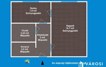 A lakás 1 db nappalival, 1 db hálószobával, 1 db fürdőszobával (Wc-vel), közlekedővel, rendelkezik.