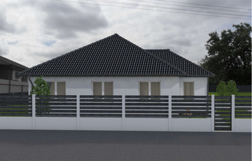 Az ikerház kizárólag a garázsnál kapcsolódik a szomszédhoz, így a lakótér teljesen szeparált.