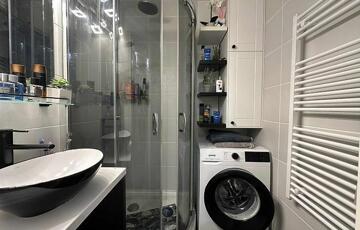 -A fürdőszoba burkolatai jó állapotúak, zuhanykabinnal felszerelt.
