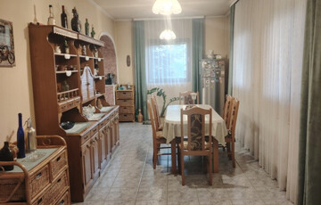 Dabason, igényes helyen, kiváló állapotú 97 m2-es családi házat kínálok értékesítésre. A ház 1988- ban épült, tégla falazattal, beton alapon áll. Alatta pince húzódik. A ház tetőtere beépített, 2 nappali, 2 fürdőszoba is található benne, alkalmas nagy családodosoknak. Az otthon melegéről gázkazán és vegyes kazán is gondoskodik. A közművek közül villany, csatorna, gáz megtalálható, de a vízellátás jelenleg fúrt kútról történik. A vezetékes víz az utvcáról beköthető igén yszerint. A kert 1332 m2-es. Minden megvan a boldog élethez, ha érdekli hívjon és megmutatom: Antal Krisztina 06204004014