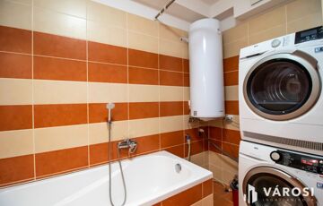 A lakásban a konyha gépesített, mosogatógéppel, mikróval és hűtőszekrénnyel is rendelkezik. A lakás a képeken látható bútorokkal kiadó. A szobákban és az előszobában is egy-egy beépített gardrób nyújt lehetőséget a tárolásra. A fürdőszobában mosó és szárítógép is található.