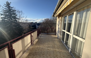 Nagy, déli fekvésű, étkezésre is alkalmas terasz