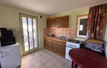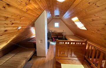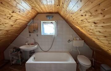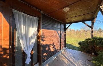 található egy <strong>bruttó 25 m² alapterületű, szigetelt faház</strong>, teakonyhával, fürdőszobával és 10 m2-es