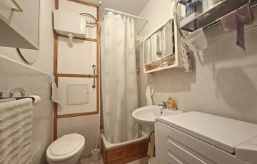 A fürdőszoba praktikus kialakítású, zuhanyzóval felszerelt. A lakás világos, élhető terekkel rendelkezik, a társasház téglaépítésű, rendezett lakóközösséggel.