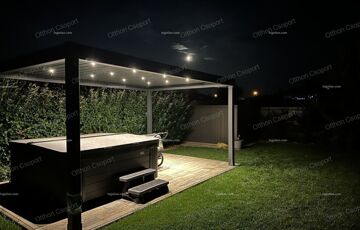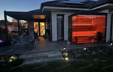 - Különleges extrák: bioklimatikus pergola a terasz felett üvegfallal (Brustor), ami télikertént funkcionál. Relax sziget -szintén pergolával (Umbroll) - az udvaron. Grillező/sütő helyiség szintén kiépítve a kertben.