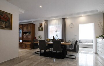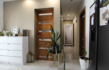 Kellemes, igényes kialakítású újszerű épület, közel 50 nm-es központi közösségi térrel rendelkezik, mely a hangulatos kialakítású főbejáraton a tágas előszobával egylégtérben található.