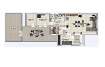 Földszinti lakótere nettó 90 nm + további 80 nm tetőtér beépítési lehetőség adott. A műszaki tartalom előkészített 2 szoba és egy fürdőszoba számára.