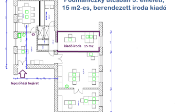 A 15 m2 office for rent, suitable for creating up to 3-4 workplaces, with equipment selected according to the tenant's needs, is for rent on the 3rd floor of a brick building WITH AN ELEVATOR, 3 MINUTES' WALK FROM THE NYUGATI RAILWAY STATION, 100 meters from the boulevard, easily accessible by public transport.
