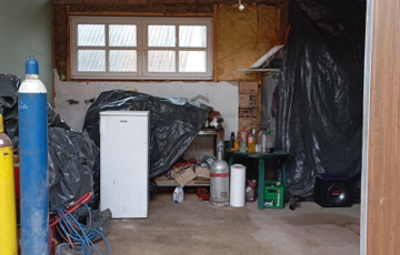 - Nagy méretű könnyűszerkezetes garázs vagy műhely épült mellé tolókapuval,mérete 50m2 3,5 méteres belmagassággal