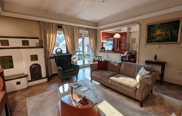 Belépve az otthonba, az első, ami szembetűnik, az a gondos tervezés, a meleg, otthonos érzés, amit a klasszikus kialakítás és a gyönyörű cserépkályha áraszt.