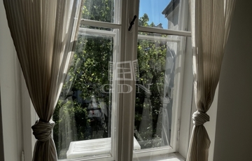 A 3. emeleti ingatlan csendes, belső udvarra néző ablakainak és a vastag falaknak köszönhetően rendkívül nyugodt és világos, miközben a város egyik legjobb közlekedési csomópontján található.