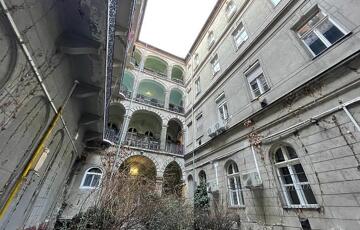 Földszinti, belső kétszintes, 1,5 szobás lakás a VII. kerületben, a Baross tér közelében. A lakás különlegessége a 424 cm-es belmagasság, amely lehetővé tette egy kényelmes álló galéria kialakítását, így a tér jól elkülöníthető és praktikusan használható. A lakáshoz egy privát légudvar is tartozik, amely ritka lehetőség a belvárosi ingatlanok között.
