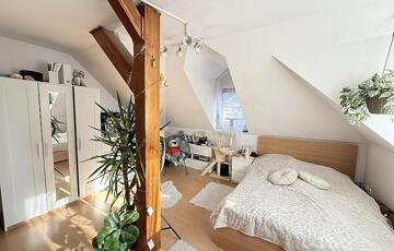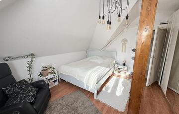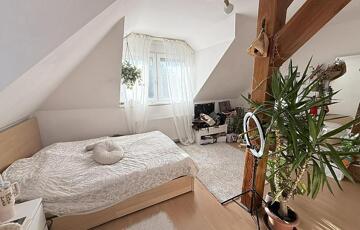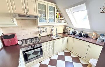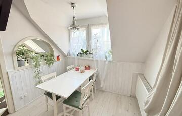 XVI. kerületben, Rákosszentmihály csendes, kertvárosi mellékutcájában eladó egy bruttó 100 m²-es, tégla építésű tetőtéri lakás.