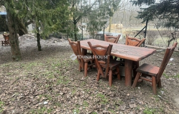 Fenyőfa, tuják és fűzfa ékesíti az udvart. Öntözési rendszert fúrt kút biztosítja.
