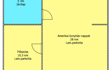 Helyiségei: amerikai konyhás nappali, hálószoba, előtér, fürdőszoba.