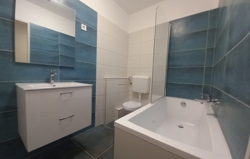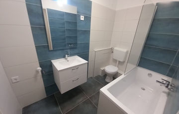 A modern fürdőszoba káddal felszerelt, amelyhez a praktikus használat érdekében zuhanyparaván is tartozik. A lakásban új, gépesített konyhabútor került beépítésre, amely tovább növeli az ingatlan komfortját és értékét.
