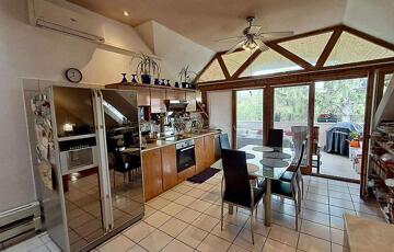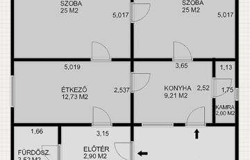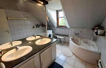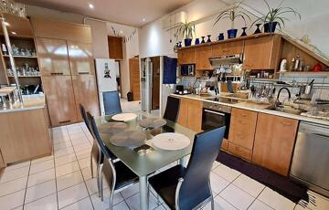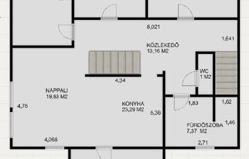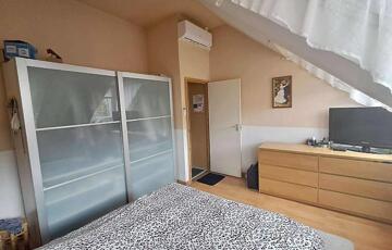 Téglaégetésű, az 1990-es években épült, esztétikai és műszaki felújítást igényel. Összesen 6 szoba, 2 konyha, 2 fürdőszoba, tároló, pince áll rendelkezésre. A fűtést kombi cirkó és 4 db hűtő-fűtő klíma biztosítja. Tartozik az ingatlanhoz egy 20 m2 terasz és egy 12 m2-es erkély. Az alsó és a felső szinten a mérőórák külön vannak.