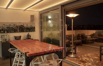 Az ingatlan egyik legkülönlegesebb eleme a hatalmas alumínium nyílászárókon keresztül feltáruló örök panoráma, amely kivételes térérzetet és természetes fényt biztosít. A lakáshoz tartozó 12 nm-es terasz, valamint a tetőterasz valódi városi luxust kínál – tökéletes helyszín pihenéshez, vendégfogadáshoz vagy akár privát rooftop élményekhez.