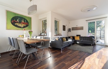 Földszint – tágas terek, természetes fény és közvetlen kapcsolat a kerthez